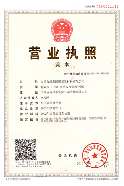 Nanchang Enhui medical and health materials Co., Ltd. (hereinafter referred to as Enhui medical): established in 2002, the company has nearly 20 years of experience in the production of medical and health materials and medical waste materials, covering an area of 28000 square meters, with 8000 square meters of modern style factories, advanced automatic production lines and professional sterile laboratory of experimental instruments, 100000 level purification workshop, to ensure the quality and safety of all products. The main product series of Enhui medical are: wound dressing, operating room consumables, medical health materials and home health care products, etc. It is an independent innovation enterprise that develops, produces and sells medical dressing and daily consumer goods with cotton as the main raw material. Enhui medical is a manufacturer and direct seller of national medical device registration products, and an Alibaba real name certification enterprise.