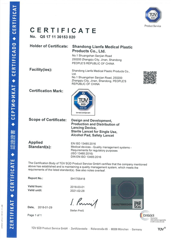 Shandong Lianfa Medical Plastic Products Co., Ltd. was established in 1992 as a Sino-US joint venture integrating R&D, production and sales. The company is located in the beautiful Chengdong Industrial Park, Zhangqiu District, Jinan City. The company now covers an area of 21,000 square meters, has 9,000 square meters of GMP-compliant 100,000-class purification workshops, and 2,000 square-meters of 10,000-class purification workshops. It has biological, chemical, and physical laboratories, and is equipped with complete testing equipment. The green area of the plant reaches more than 50%.