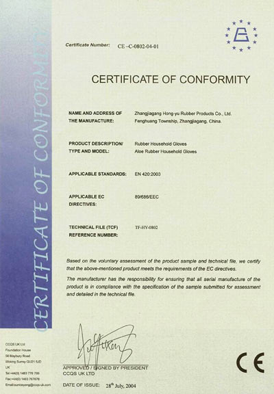 Hong Yu has a solid and high-level management team and sincerely welcome customers from home and broad. We will faithfully cooperate with our old and new clients, doing our best to meet their demands In addition, our company provides other products such as one-off latex powderless rubber examination glove, aloe rubber examination glove, aloe nitrile rubber examination glove, 12" rubber examination glove, and 12" nitrile rubber examination glove. These products are 100% sold in America market. Offering grip comfort, whitening and protection effects on the skin, they are superior in the line of examination gloves and in favor with American clients and users. In order to enhance the quality of products and expand the market, the company has obtained ISO9001: 2000 quality management system certificate and CE (EN-420, EN-376, 3N-388) product quality certificate. We are committed to the corporate idea and abide by the guideline, i.e., "Hong Yu transcending constantly; Quality satisfying the needs of the customers."